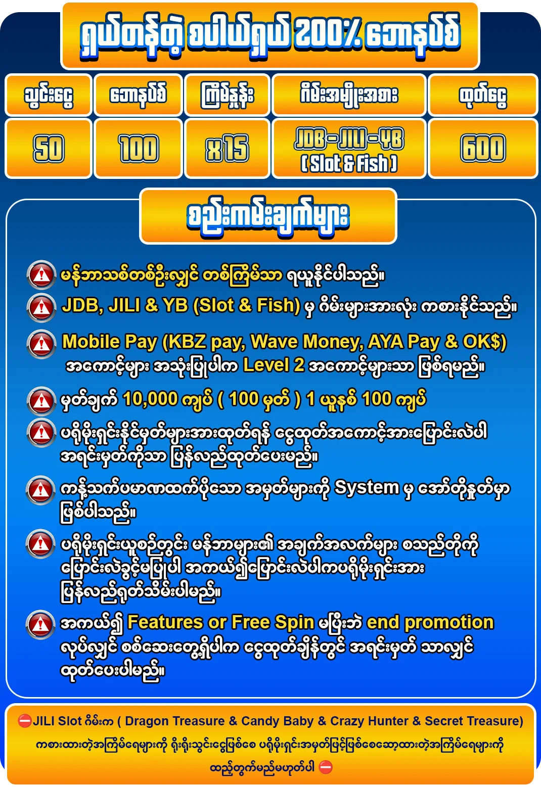 5. During participation the promotion, can't edit any information at all, such as name, surname, bank, bank account name, if found to be modified will disqualify and/or cut the winnings credit immediately.
